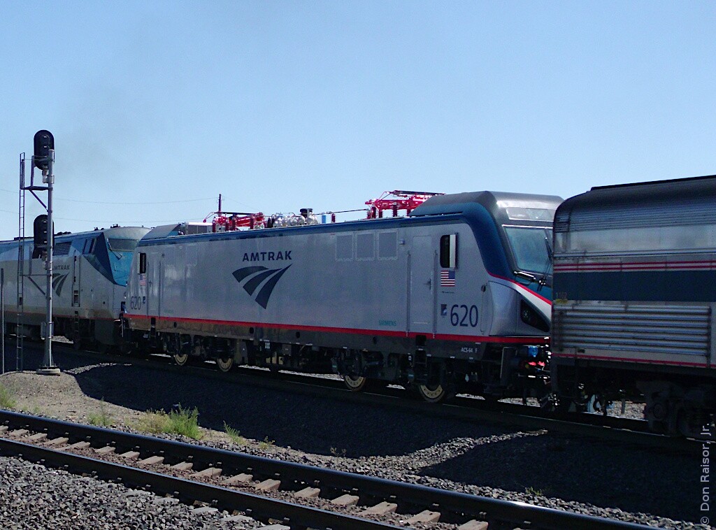 A brand new Siemens ACS-64 is being taken east by the California Zephyr.