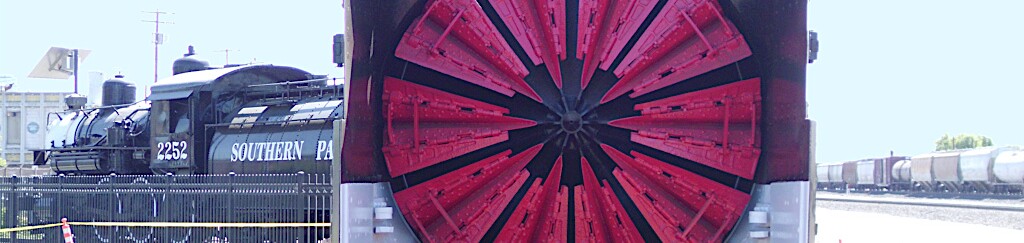 Photographs of locomotives, trains and other railroad equipment, mostly in the vicinity of the J. R. Davis Yard in Roseville California.