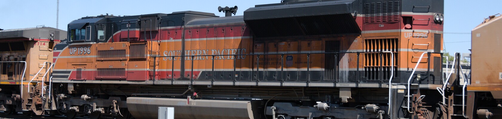 Union Pacific's heritage unit paying tribute to the fallen flag Southern Pacific.