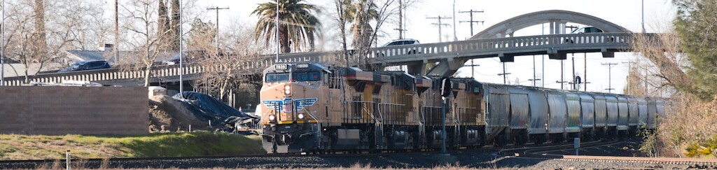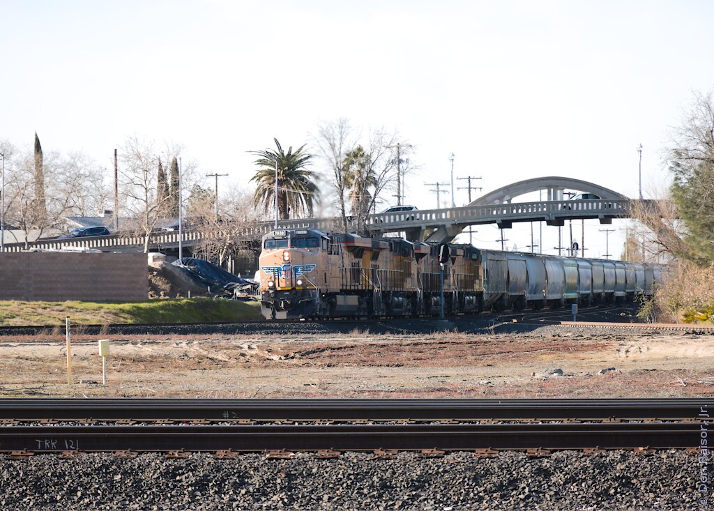 Photographs of locomotives, trains and other railroad equipment, mostly in the vicinity of the J. R. Davis Yard in Roseville California.