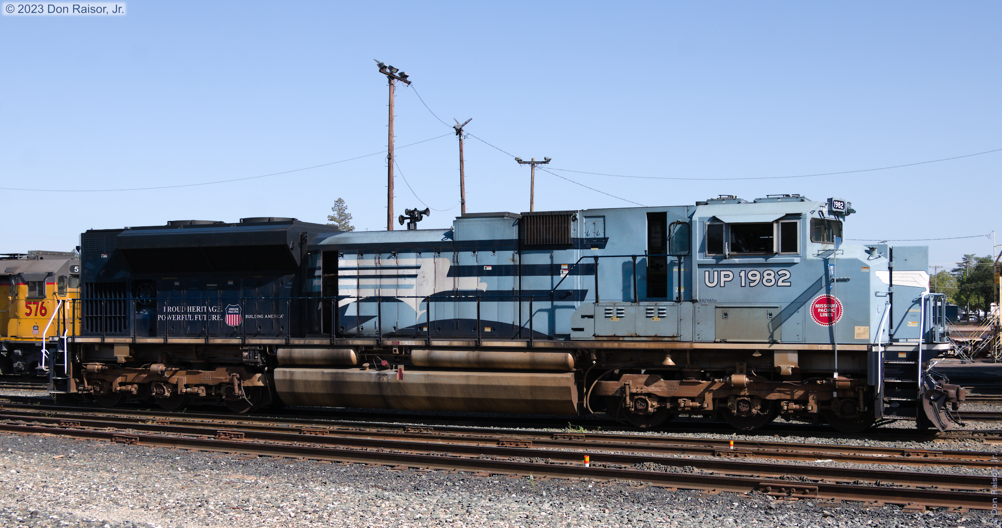 Heritage unit honoring fallen flag Missouri Pacific Lines. - UP1982 was being serviced just outside the shop, in front of the entrance to drop pit two.