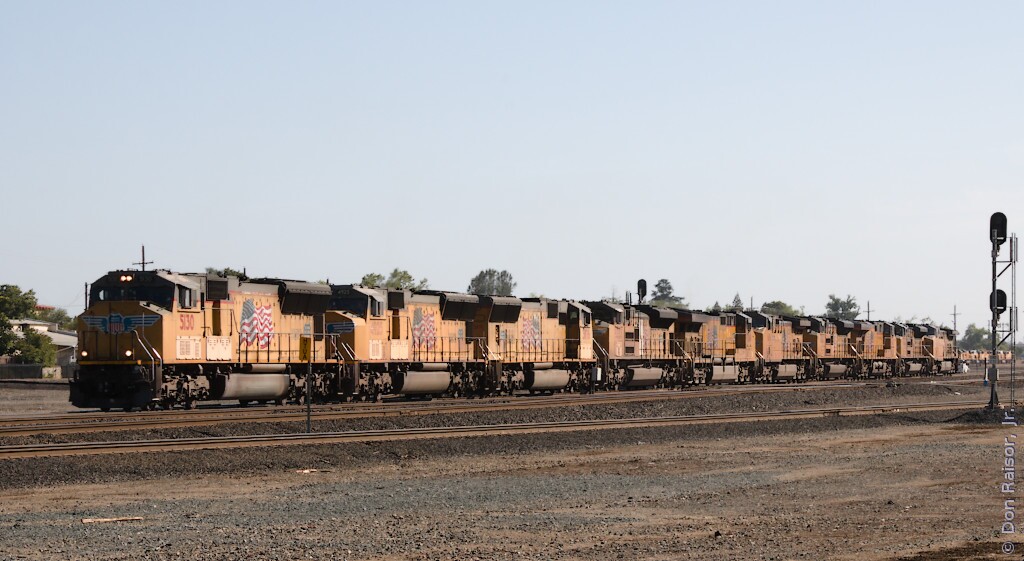 Union Pacific's heritage unit paying tribute to the fallen flag Western Pacific is part of a light power move.