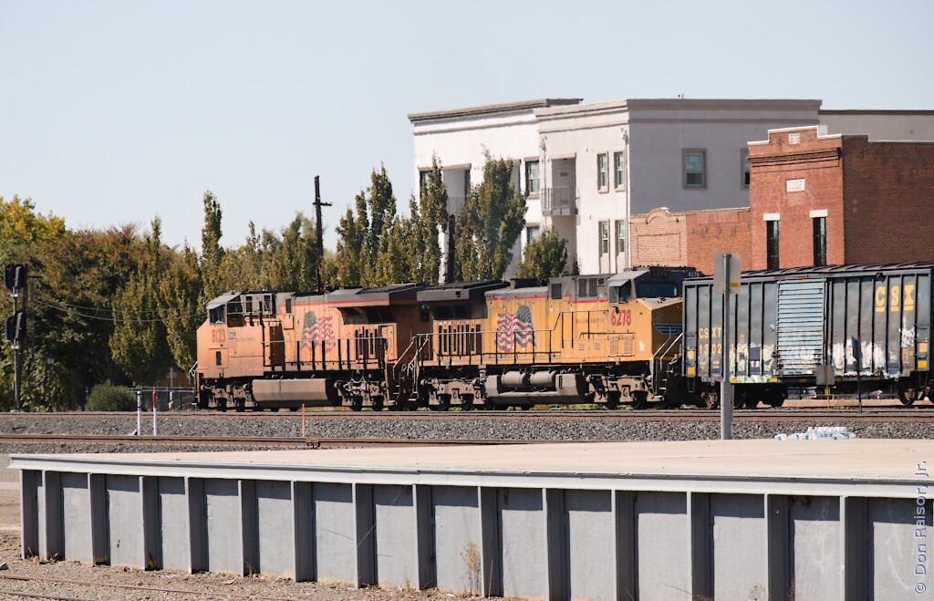 Heritage unit honoring fallen flag Missouri Pacific Lines. - UP1982 is leading a mix manifest off the Valley Subdivision.