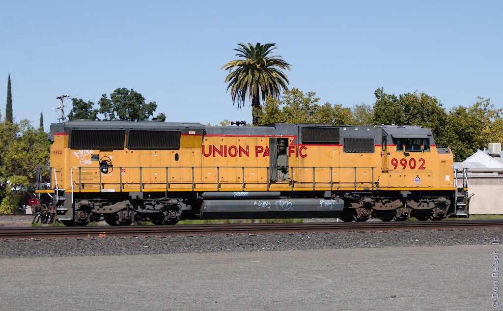Photographs of locomotives, trains and other railroad equipment, mostly in the vicinity of the J. R. Davis Yard in Roseville California.