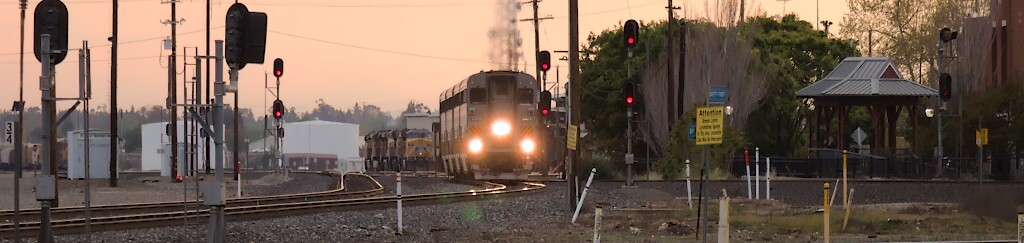 The Folsom Turn was shoved out of the yard onto main track two, and is seen here about to head west into the sunset.