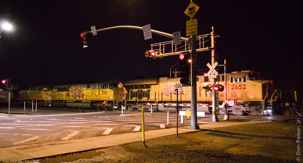 The Union Pacific mixed manifest is heading into the yard.