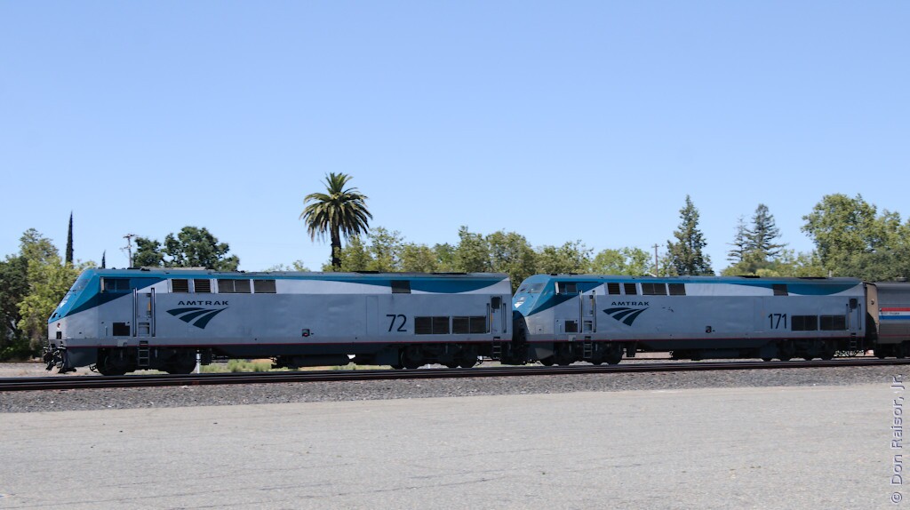 Photographs of locomotives, trains and other railroad equipment, mostly in the vicinity of the J. R. Davis Yard in Roseville California.