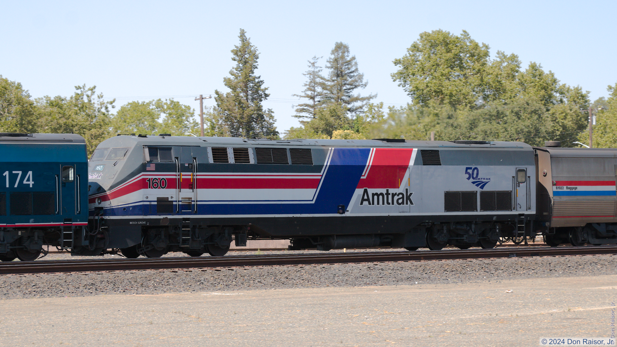 Amtrak's California Zephyr number five is just a few seconds away from arriving at the platform. -- Dash 8 Phase III color scheme - 50th Anniversary Heritage Unit.