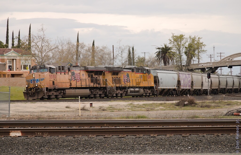 A loaded grain coming in off the Valley Subdivision and onto the Martinez Subdivision, to the right and not in this photo.