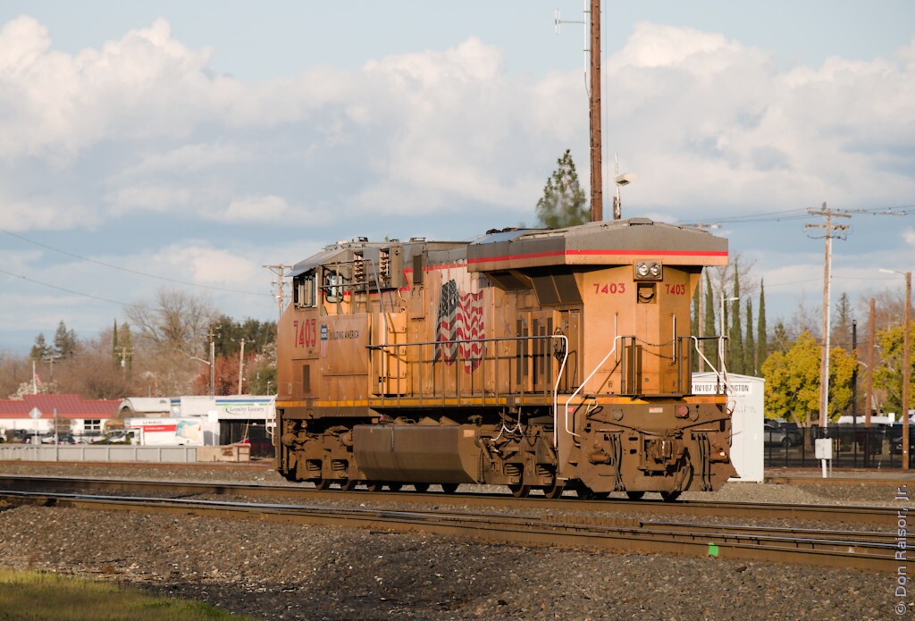 An E-move heading to Loomis, California, just a few miles away, where it will wait for a new crew so it can serve an industrial spur sometime in the near future.