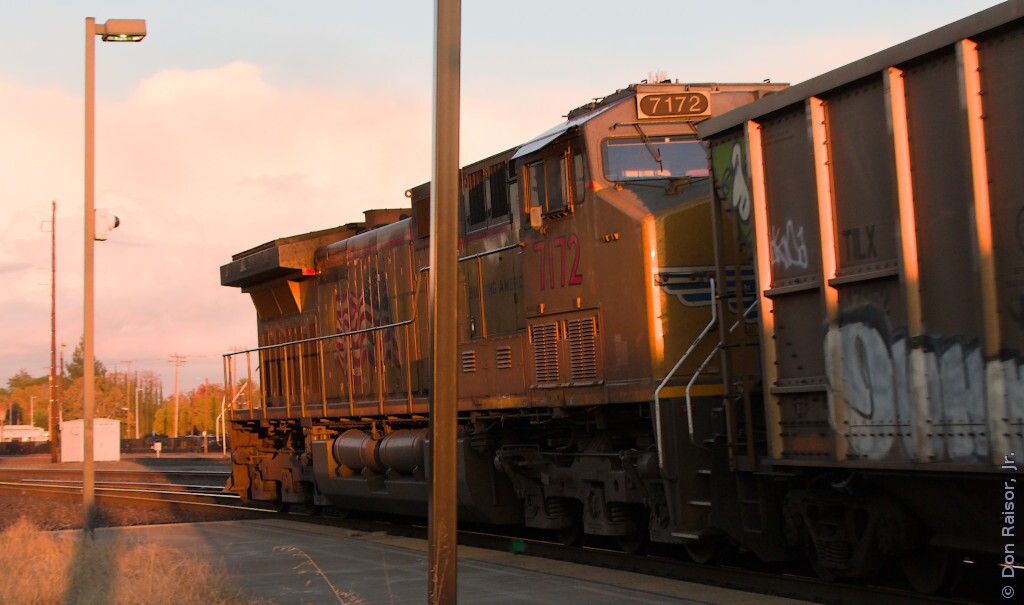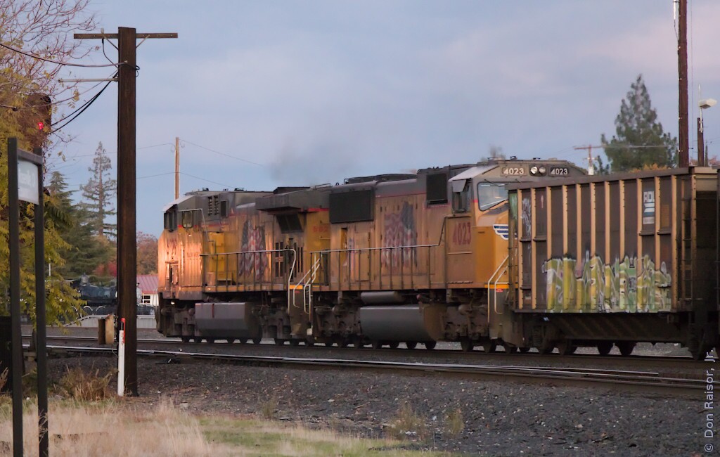 A loaded coal train coming in off of the Valley Subdivision. Note that UP8335's nose is missing the shield logo.
