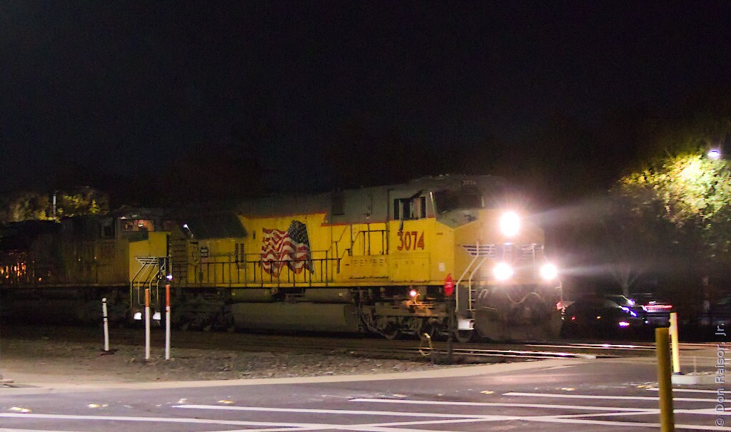 UP3074's lights illuminate the smoke from fireplaces and wood stoves as it brings MSPRV in from Sparks, Nevada. -- *Tier four version.