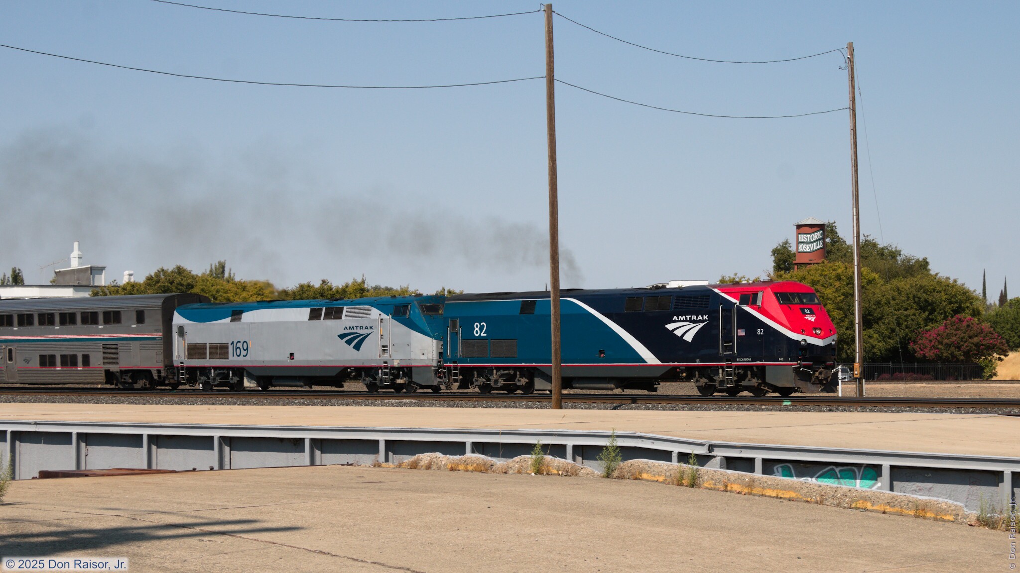 California Zephyr number six with a deadheading transition sleeper. - A mixed manifest. - California Zephyr number five, that departed Chicago on August 8, 2025, arrived 21 hours and 29 minutes late. - California Zephyr number five, that departed Chicago on August 9, 2025, arrived 3 hours and 53 minutes late. - Amtrak California's Capitol Corridor 538.
