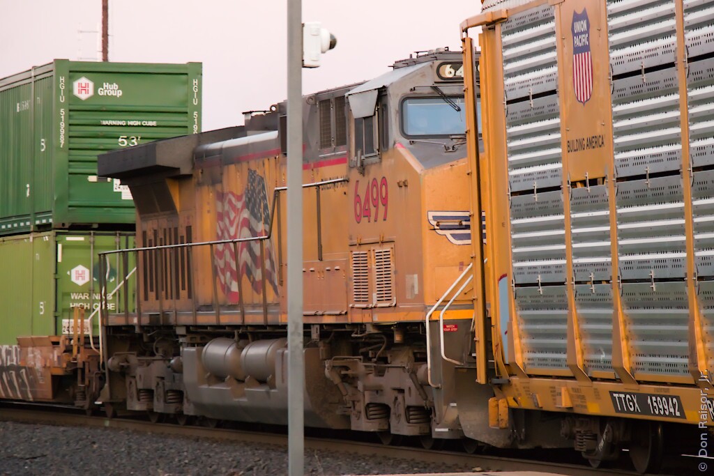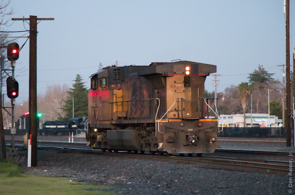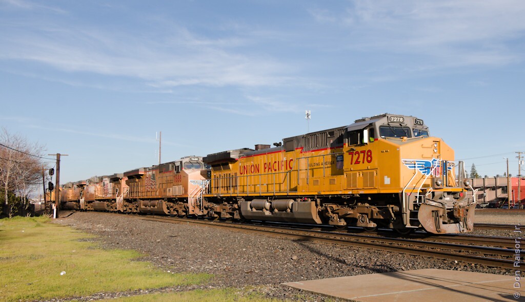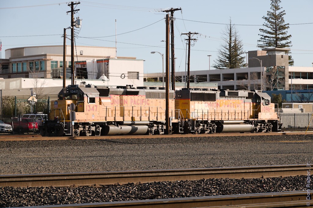 The Folsom Turn has shoved out of the City Yard onto main track two and is waiting to head west.